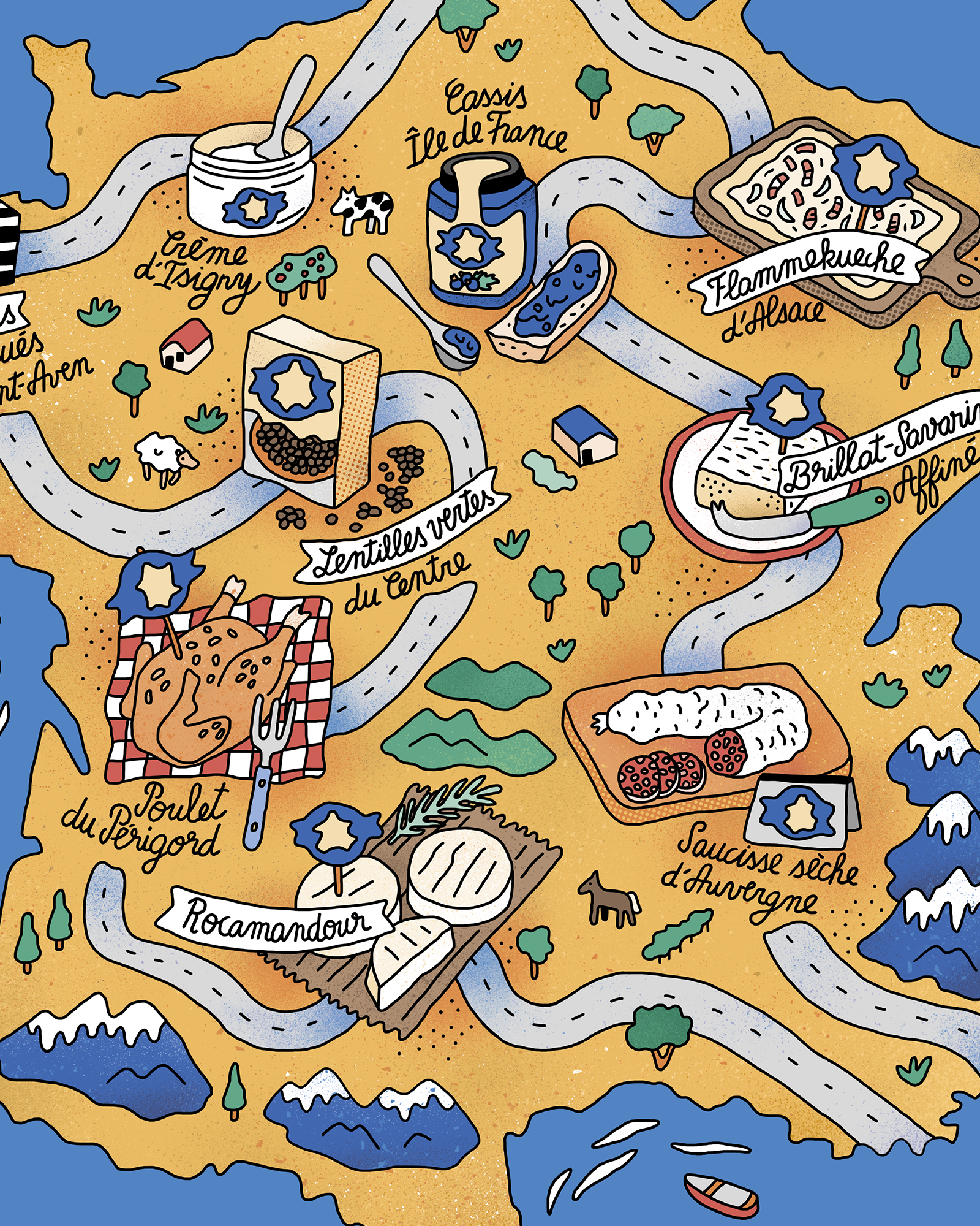 E.Leclerc est une grande chaîne de distribution française. J’ai réalisé une illustration pour une campagne publicitaire mettant en avant les produits locaux.